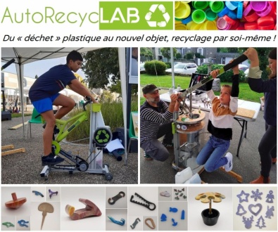 AutoRecycLAB est un atelier mobile et pratique de recyclage du plastique par soi-même, à l'aide de machines low tech et à énergie humaine.